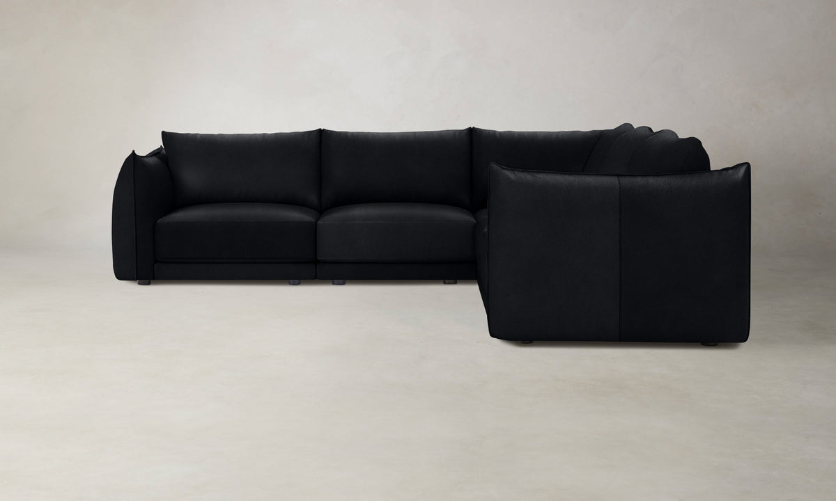 The Jones Sectional's low-lying, modular design recalls silhouettes from the 1970s. It has voluminous cushions and plush arms complete with flange seams for a tailored finish. Handcrafted in North Carolina.
