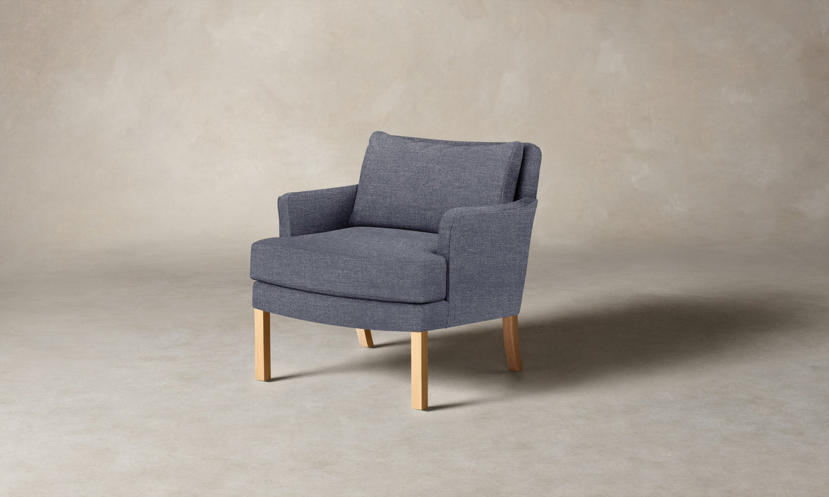 The Kaye Chair pays homage to mid-century Danish design with its simple form. Gently curved along the back and arms, it envelops the body in masterful upholstery and generous cushioning. Slender white oak legs lend the design a classic appeal. Handcrafted in North Carolina.
