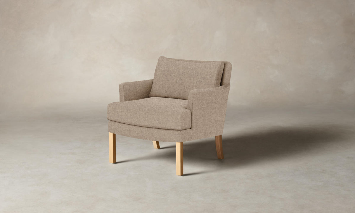 The Kaye Chair pays homage to mid-century Danish design with its simple form. Gently curved along the back and arms, it envelops the body in masterful upholstery and generous cushioning. Slender white oak legs lend the design a classic appeal. Handcrafted in North Carolina.