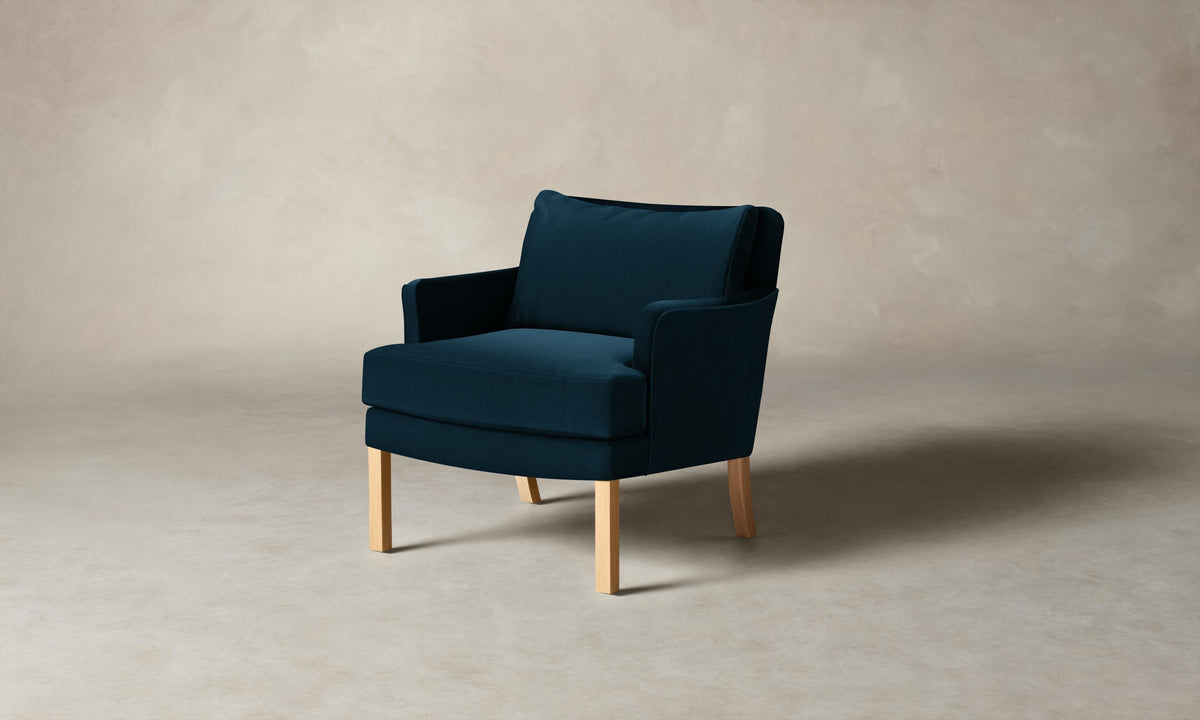 The Kaye Chair pays homage to mid-century Danish design with its simple form. Gently curved along the back and arms, it envelops the body in masterful upholstery and generous cushioning. Slender white oak legs lend the design a classic appeal. Handcrafted in North Carolina.