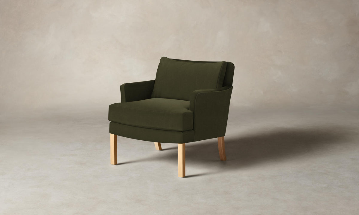 The Kaye Chair pays homage to mid-century Danish design with its simple form. Gently curved along the back and arms, it envelops the body in masterful upholstery and generous cushioning. Slender white oak legs lend the design a classic appeal. Handcrafted in North Carolina.