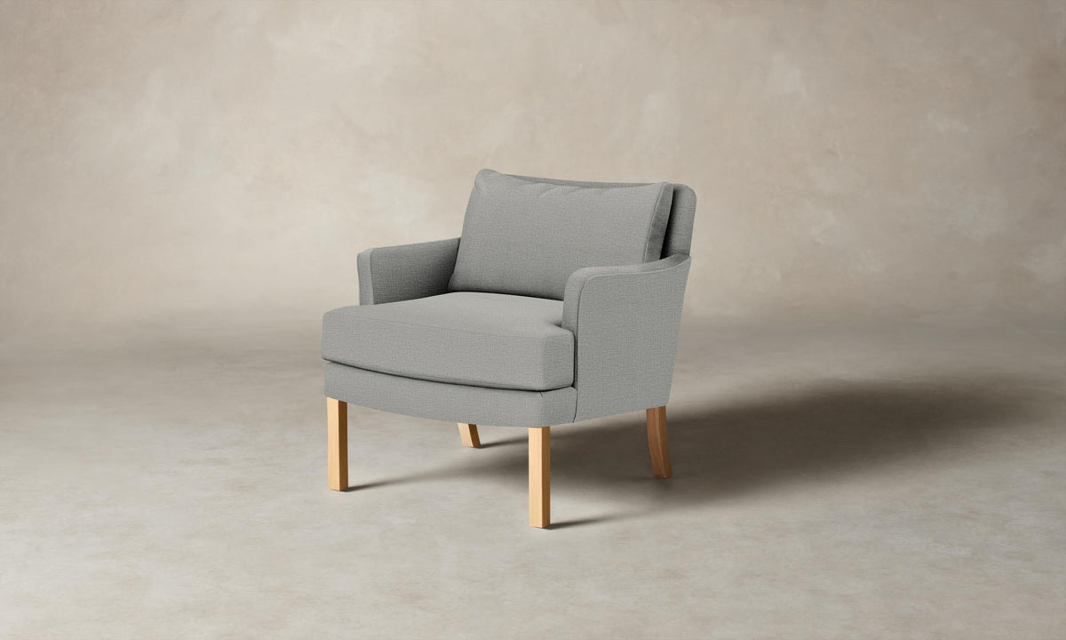 The Kaye Chair pays homage to mid-century Danish design with its simple form. Gently curved along the back and arms, it envelops the body in masterful upholstery and generous cushioning. Slender white oak legs lend the design a classic appeal. Handcrafted in North Carolina.