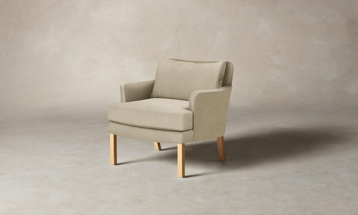 The Kaye Chair pays homage to mid-century Danish design with its simple form. Gently curved along the back and arms, it envelops the body in masterful upholstery and generous cushioning. Slender white oak legs lend the design a classic appeal. Handcrafted in North Carolina.