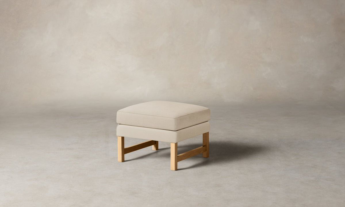 The Kaye Ottoman pays homage to mid-century Danish design with its simple form. The seat is masterfully upholstered and generously cushioned for a plush feel. It sits atop slender white oak legs that lend the design a classic appeal. Handcrafted in North Carolina.