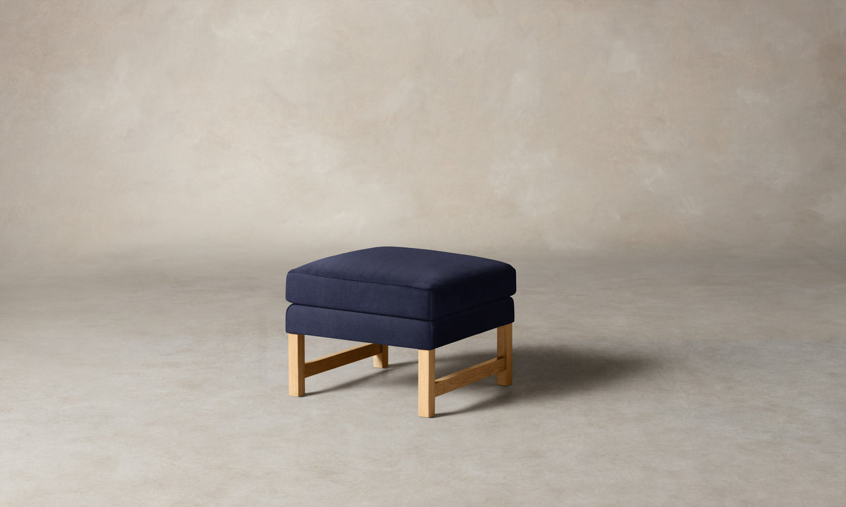 The Kaye Ottoman pays homage to mid-century Danish design with its simple form. The seat is masterfully upholstered and generously cushioned for a plush feel. It sits atop slender white oak legs that lend the design a classic appeal. Handcrafted in North Carolina.