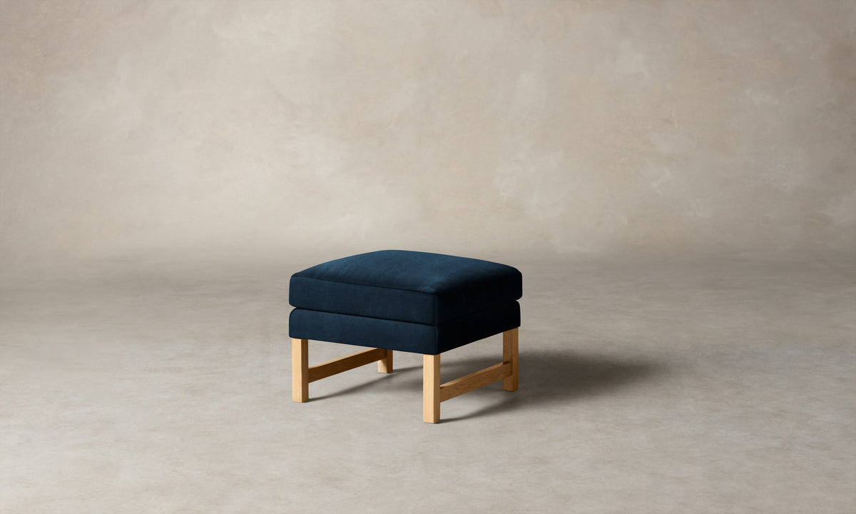 The Kaye Ottoman pays homage to mid-century Danish design with its simple form. The seat is masterfully upholstered and generously cushioned for a plush feel. It sits atop slender white oak legs that lend the design a classic appeal. Handcrafted in North Carolina.