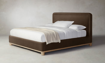 The Kent Bed’s rounded geometries create a sense of softness and tranquility. The design is tightly upholstered to emphasize its curved corners and foot rail, and it sits atop a plinth base with lathe-turned legs. Handcrafted in North Carolina.