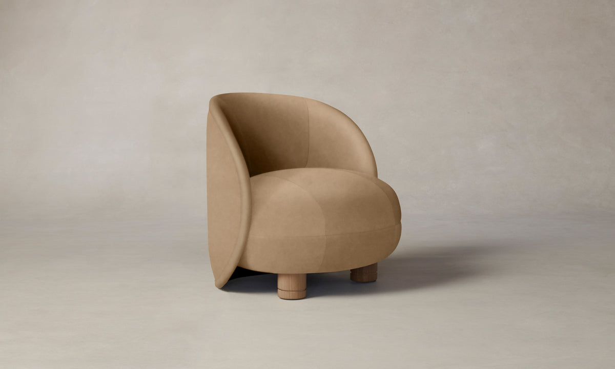The Laight reimagines the classic slipper chair with a new sense of softness and whimsy. It has a curved, wraparound back and voluminous seat that sits atop lathe-turned legs. Handcrafted in North Carolina.