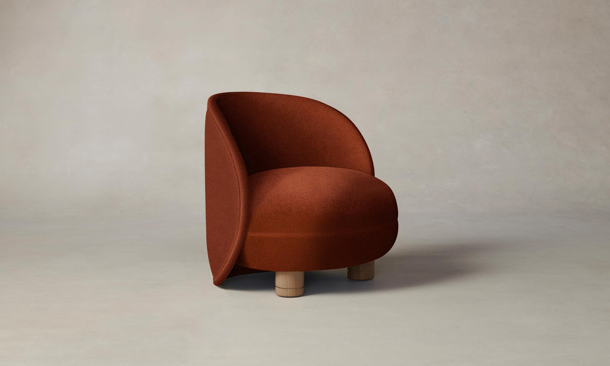 The Laight reimagines the classic slipper chair with a new sense of softness and whimsy. It has a curved, wraparound back and voluminous seat that sits atop lathe-turned legs. Handcrafted in North Carolina.