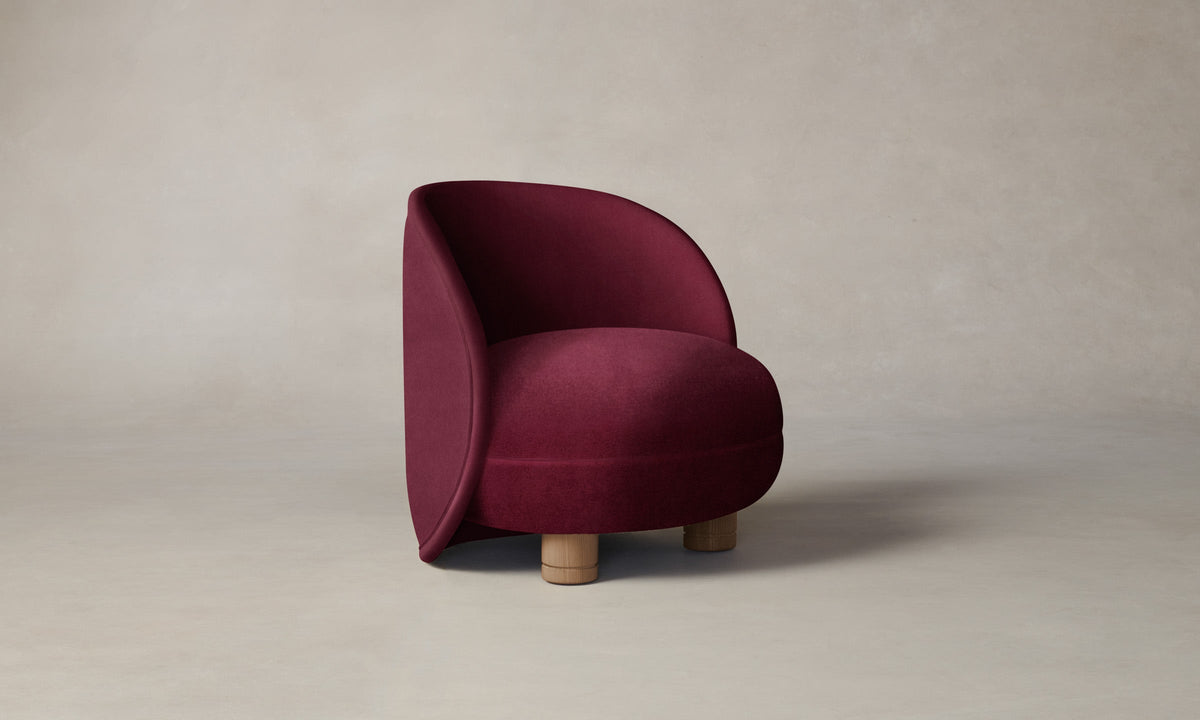 The Laight reimagines the classic slipper chair with a new sense of softness and whimsy. It has a curved, wraparound back and voluminous seat that sits atop lathe-turned legs. Handcrafted in North Carolina.