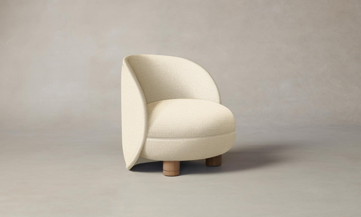 The Laight reimagines the classic slipper chair with a new sense of softness and whimsy. It has a curved, wraparound back and voluminous seat that sits atop lathe-turned legs. Handcrafted in North Carolina.