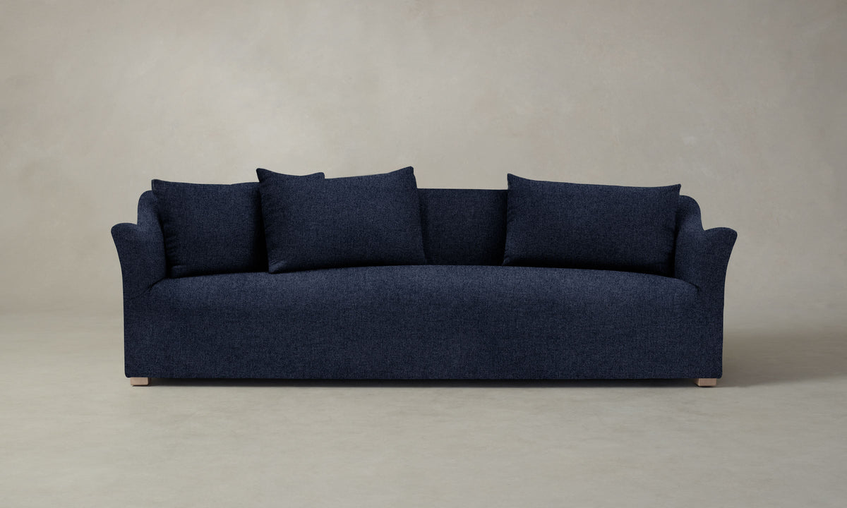 The Lenox Sofa is distinguished by its flared silhouette and sloped arms—together, they extend an invitation to relax. The frame is tightly upholstered and set upon recessed legs. Handcrafted in North Carolina.