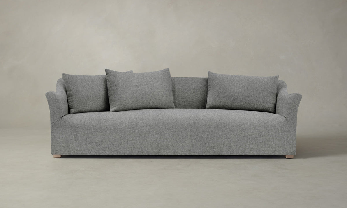 The Lenox Sofa is distinguished by its flared silhouette and sloped arms—together, they extend an invitation to relax. The frame is tightly upholstered and set upon recessed legs. Handcrafted in North Carolina.