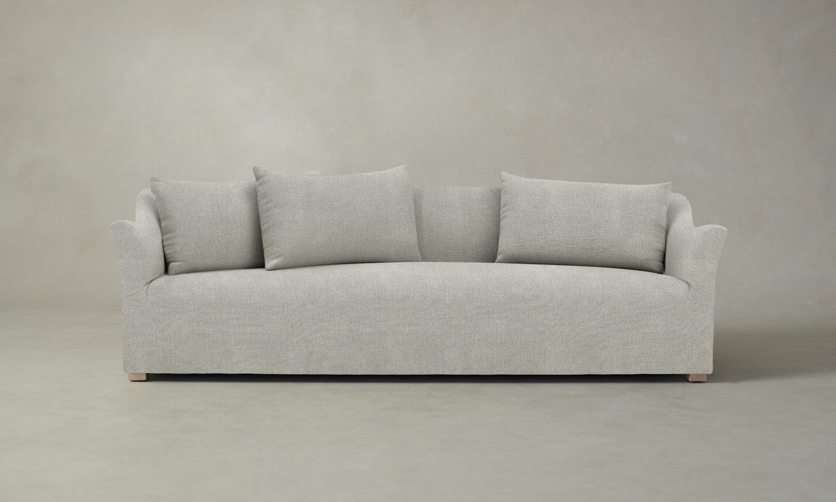 The Lenox Sofa is distinguished by its flared silhouette and sloped arms—together, they extend an invitation to relax. The frame is tightly upholstered and set upon recessed legs. Handcrafted in North Carolina.