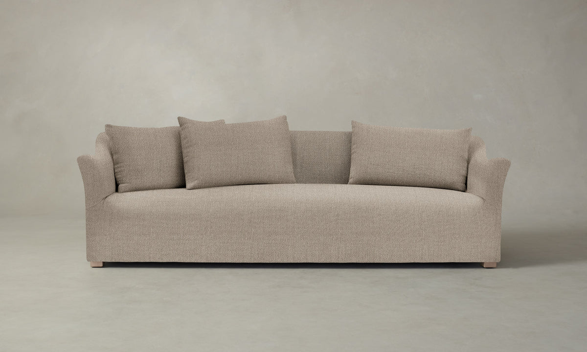 The Lenox Sofa is distinguished by its flared silhouette and sloped arms—together, they extend an invitation to relax. The frame is tightly upholstered and set upon recessed legs. Handcrafted in North Carolina.