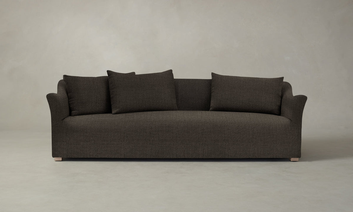 The Lenox Sofa is distinguished by its flared silhouette and sloped arms—together, they extend an invitation to relax. The frame is tightly upholstered and set upon recessed legs. Handcrafted in North Carolina.