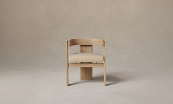 Drawing from the French word "Lune," the Lunara Dining Armchair is named after its distinctive crescent-shaped seat back. It has a plush seat mounted within planar legs and is complete with exposed dowel joinery that underscores the woodcraft behind the design. Handcrafted in New York.