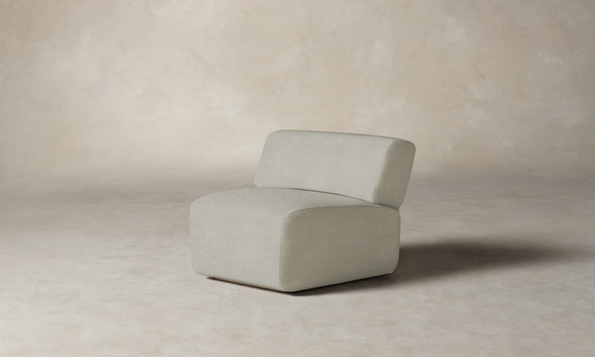 The Miles Modular Chair is a bold articulation of modernist design influences. It features a voluminous seat cushion that rests upon a polished chrome frame. Handcrafted in North Carolina.