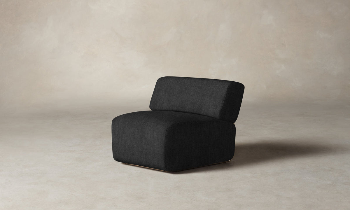 The Miles Modular Chair is a bold articulation of modernist design influences. It features a voluminous seat cushion that rests upon a polished chrome frame. Handcrafted in North Carolina.