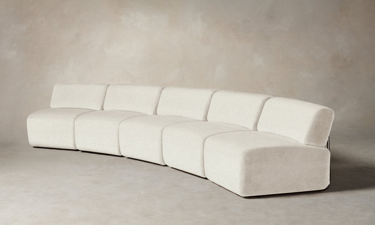 The Miles Modular Sectional is a bold articulation of modernist design influences. Resting upon a polished chrome frame, its voluminous seat cushions come together into a beautiful curved silhouette. Handcrafted in North Carolina.