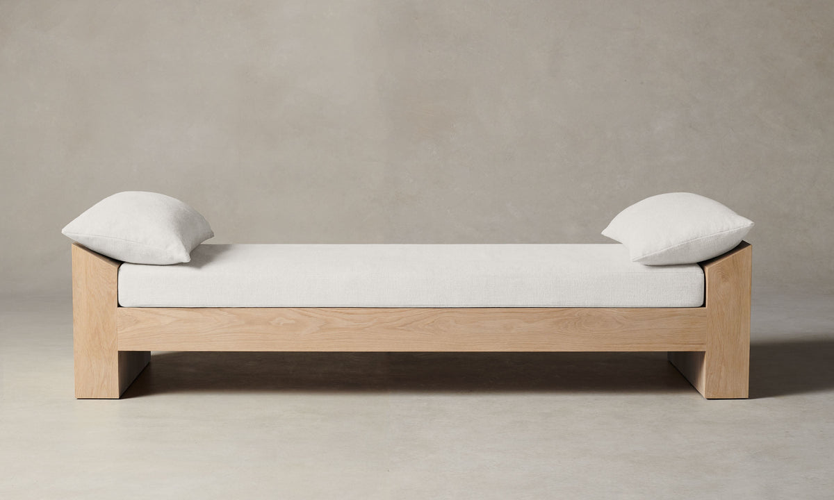 The Montauk Daybed is a sanctuary for relaxation. Its low-lying frame cradles a plush cushion and soft pillows that invite a sense of serenity. Handcrafted in North Carolina.