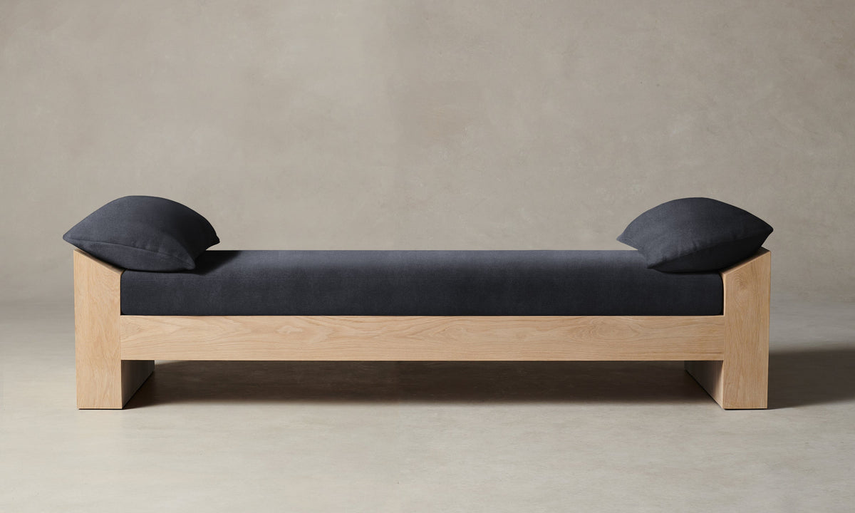 The Montauk Daybed is a sanctuary for relaxation. Its low-lying frame cradles a plush cushion and soft pillows that invite a sense of serenity. Handcrafted in North Carolina.