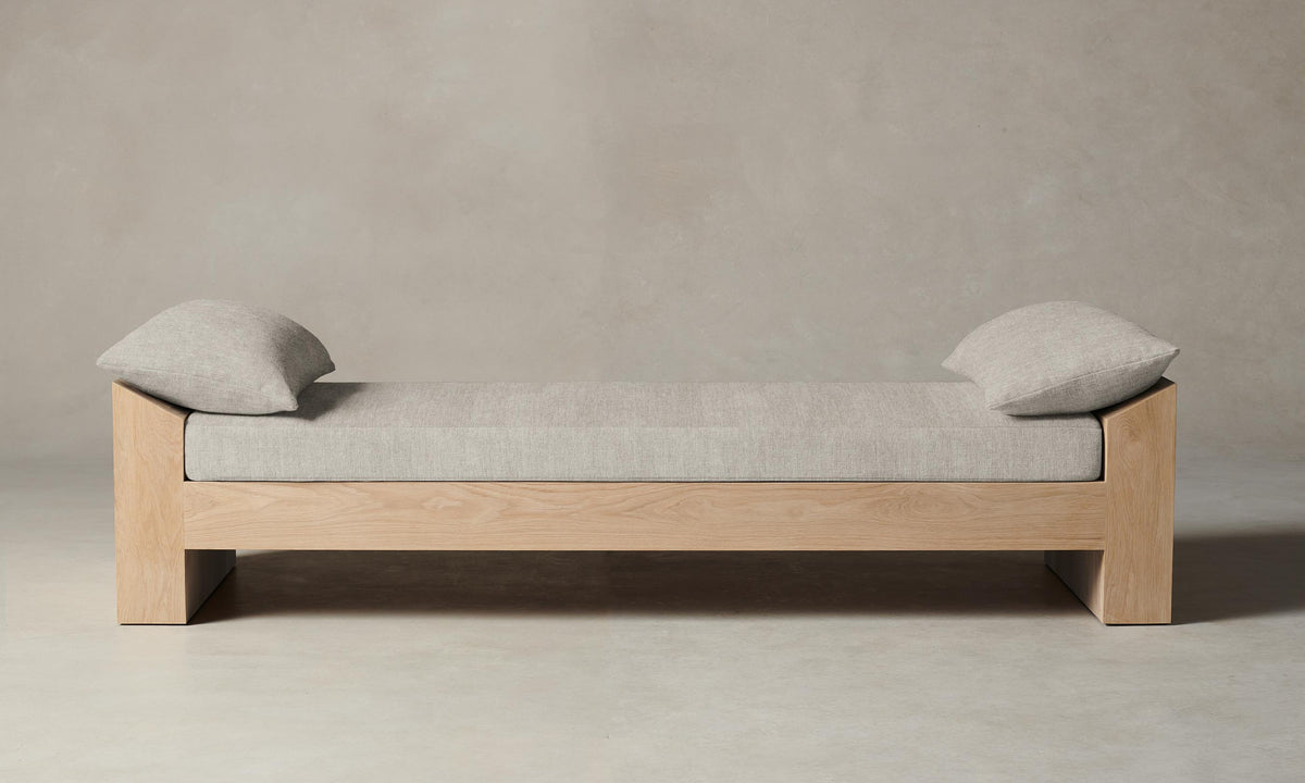 The Montauk Daybed is a sanctuary for relaxation. Its low-lying frame cradles a plush cushion and soft pillows that invite a sense of serenity. Handcrafted in North Carolina.