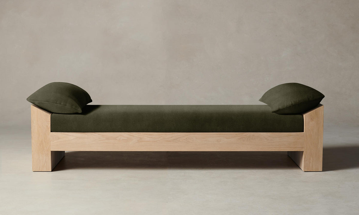 The Montauk Daybed is a sanctuary for relaxation. Its low-lying frame cradles a plush cushion and soft pillows that invite a sense of serenity. Handcrafted in North Carolina.