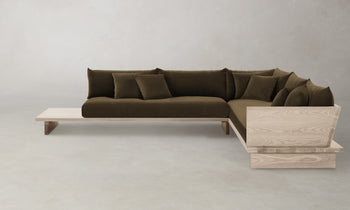 From the woodwork to the tailoring, every element of the Muir Sectional is a display of exquisite artisanship. Its angular frame extends beyond the seat cushion, allowing space for decorative objects or necessities. Handcrafted in North Carolina.