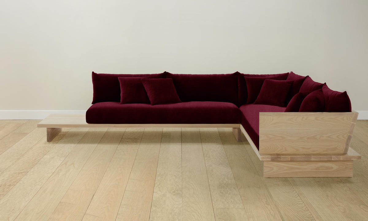 From the woodwork to the tailoring, every element of the Muir Sectional is a display of exquisite artisanship. Its angular frame extends beyond the seat cushion, allowing space for decorative objects or necessities. Handcrafted in North Carolina.