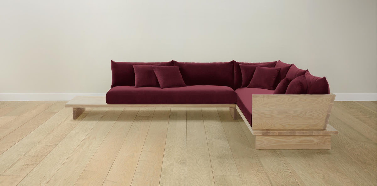 From the woodwork to the tailoring, every element of the Muir Sectional is a display of exquisite artisanship. Its angular frame extends beyond the seat cushion, allowing space for decorative objects or necessities. Handcrafted in North Carolina.