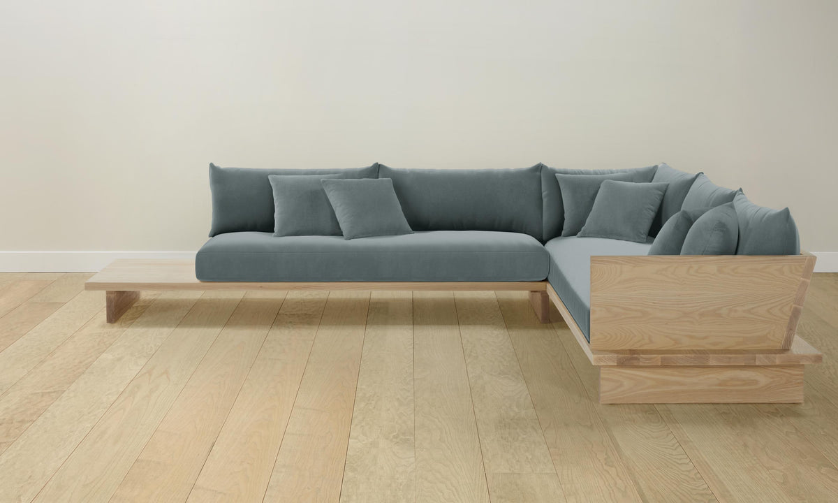 From the woodwork to the tailoring, every element of the Muir Sectional is a display of exquisite artisanship. Its angular frame extends beyond the seat cushion, allowing space for decorative objects or necessities. Handcrafted in North Carolina.
