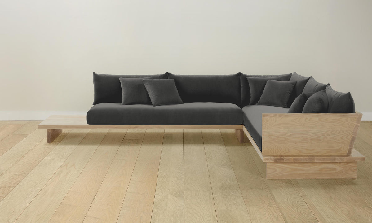 From the woodwork to the tailoring, every element of the Muir Sectional is a display of exquisite artisanship. Its angular frame extends beyond the seat cushion, allowing space for decorative objects or necessities. Handcrafted in North Carolina.