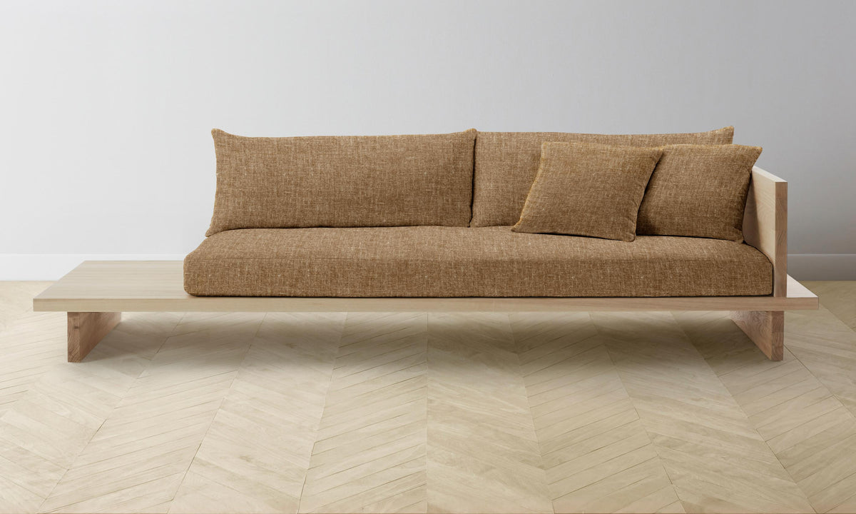 From the woodwork to the tailoring, every element of the Muir Sofa is a display of exquisite artisanship. Its angular frame extends beyond the seat cushion, allowing space for decorative objects or necessities. Handcrafted in North Carolina.