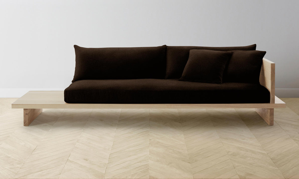 From the woodwork to the tailoring, every element of the Muir Sofa is a display of exquisite artisanship. Its angular frame extends beyond the seat cushion, allowing space for decorative objects or necessities. Handcrafted in North Carolina.