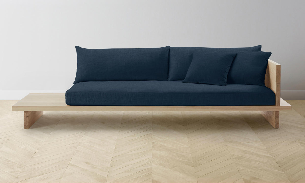 From the woodwork to the tailoring, every element of the Muir Sofa is a display of exquisite artisanship. Its angular frame extends beyond the seat cushion, allowing space for decorative objects or necessities. Handcrafted in North Carolina.