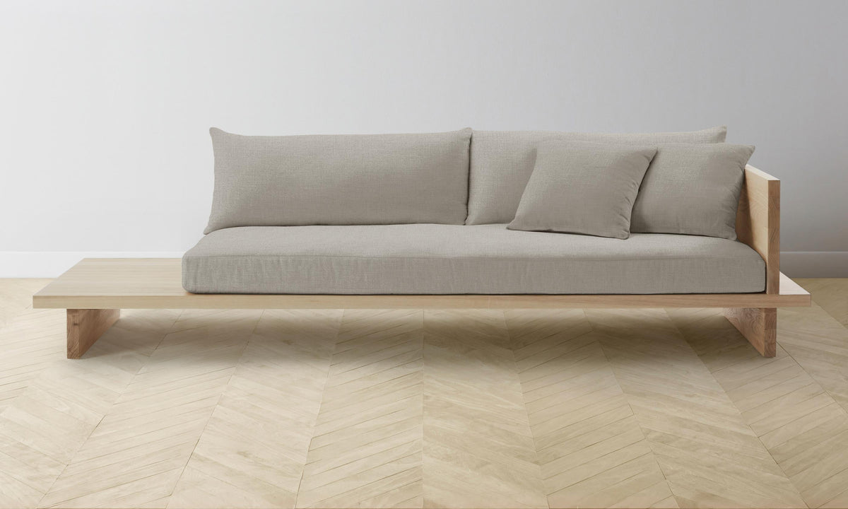 From the woodwork to the tailoring, every element of the Muir Sofa is a display of exquisite artisanship. Its angular frame extends beyond the seat cushion, allowing space for decorative objects or necessities. Handcrafted in North Carolina.