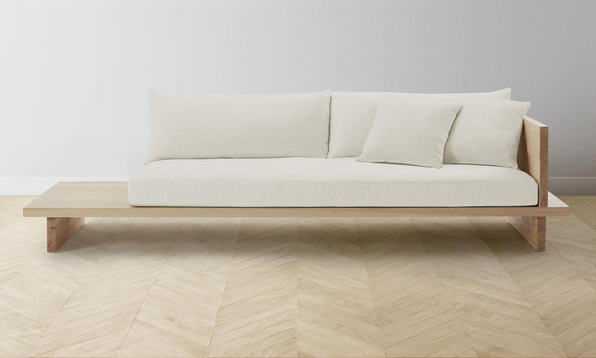 From the woodwork to the tailoring, every element of the Muir Sofa is a display of exquisite artisanship. Its angular frame extends beyond the seat cushion, allowing space for decorative objects or necessities. Handcrafted in North Carolina.