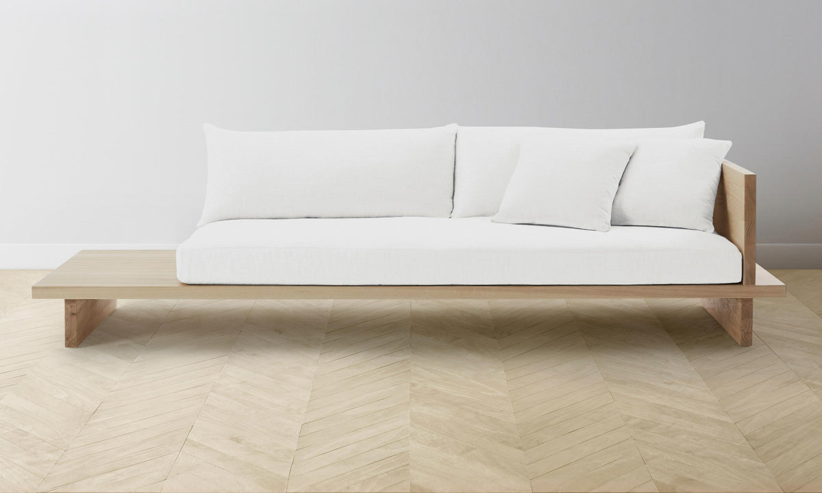 From the woodwork to the tailoring, every element of the Muir Sofa is a display of exquisite artisanship. Its angular frame extends beyond the seat cushion, allowing space for decorative objects or necessities. Handcrafted in North Carolina.
