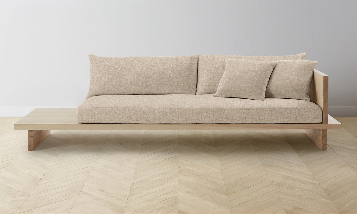 From the woodwork to the tailoring, every element of the Muir Sofa is a display of exquisite artisanship. Its angular frame extends beyond the seat cushion, allowing space for decorative objects or necessities. Handcrafted in North Carolina.