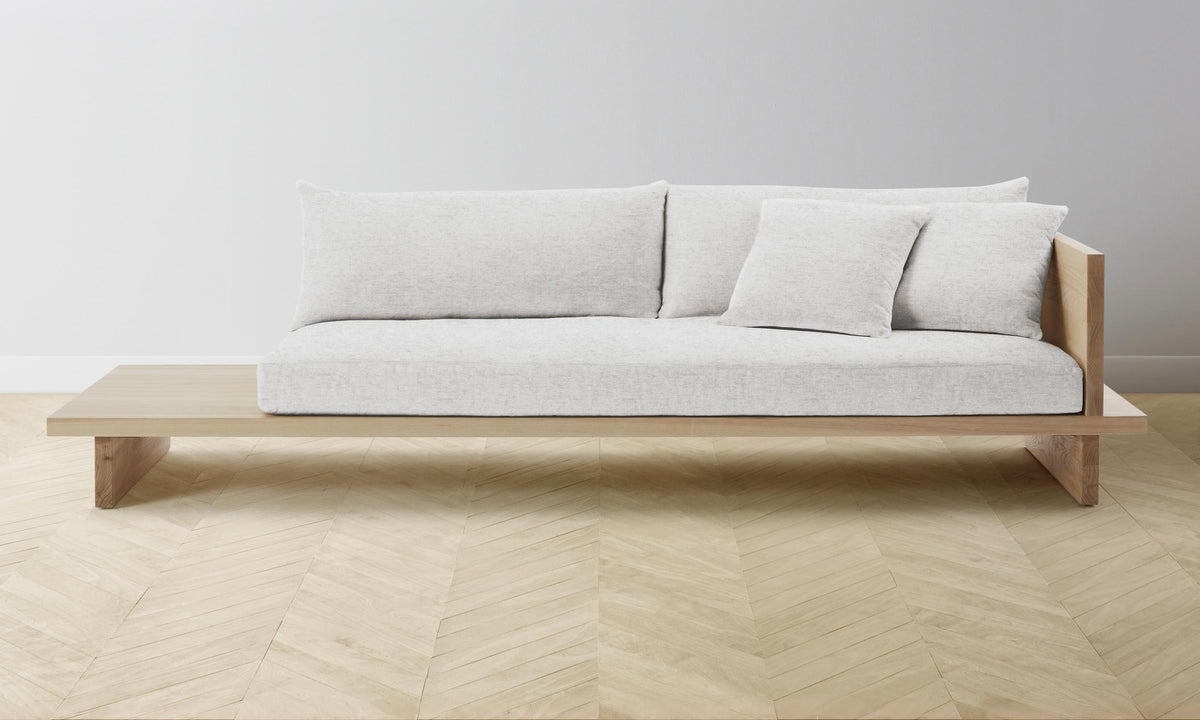From the woodwork to the tailoring, every element of the Muir Sofa is a display of exquisite artisanship. Its angular frame extends beyond the seat cushion, allowing space for decorative objects or necessities. Handcrafted in North Carolina.