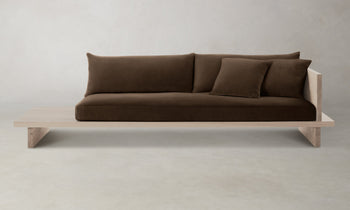 From the woodwork to the tailoring, every element of the Muir Sofa is a display of exquisite artisanship. Its angular frame extends beyond the seat cushion, allowing space for decorative objects or necessities. Handcrafted in North Carolina.