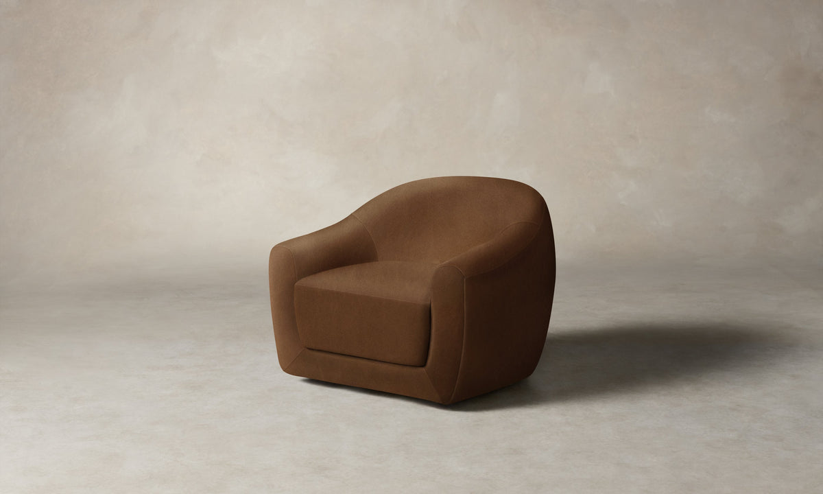 The Oliver Swivel Chair is soft and inviting in form. Its sloped wraparound arms extend an invitation to sit while its deep seat envelops the body in plush cushioning. Handcrafted in North Carolina.