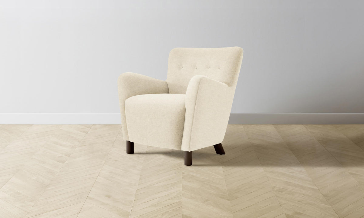 The Perry Chair carries mid-century Scandinavian design influences into the home with its sinuous silhouette and button-tufted details. Tight upholstery and blind seams lend the design a smooth finish. Handcrafted in North Carolina.