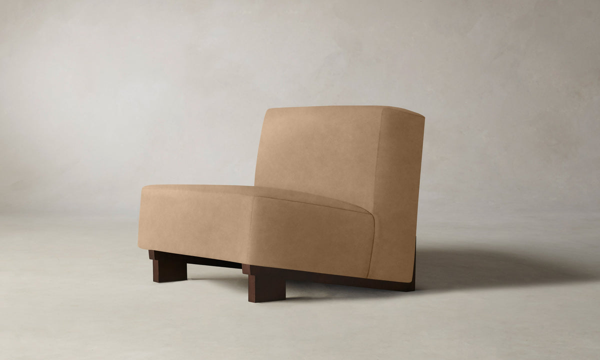 The Remsen Chair’s bold proportions and streamlined silhouette are informed by Art Moderne design. It has a low-slung seat that sits at an angle atop a sculptural white oak base. Handcrafted in North Carolina.