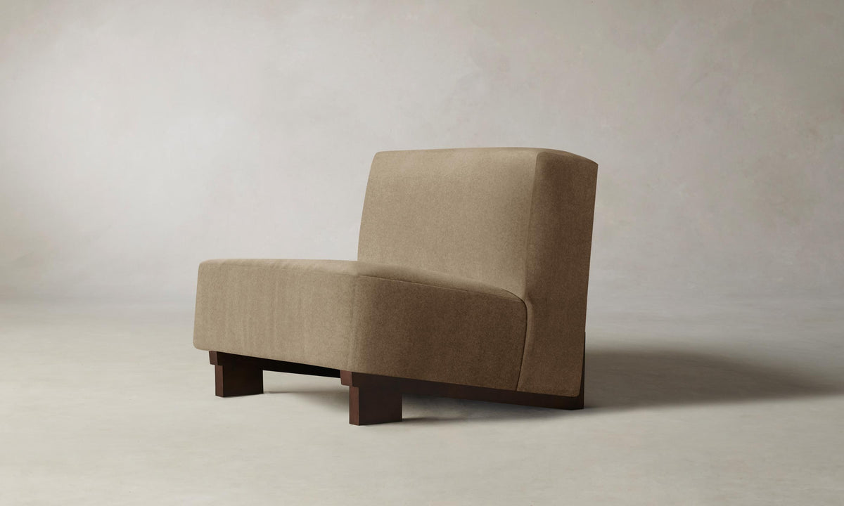 The Remsen Chair’s bold proportions and streamlined silhouette are informed by Art Moderne design. It has a low-slung seat that sits at an angle atop a sculptural white oak base. Handcrafted in North Carolina.