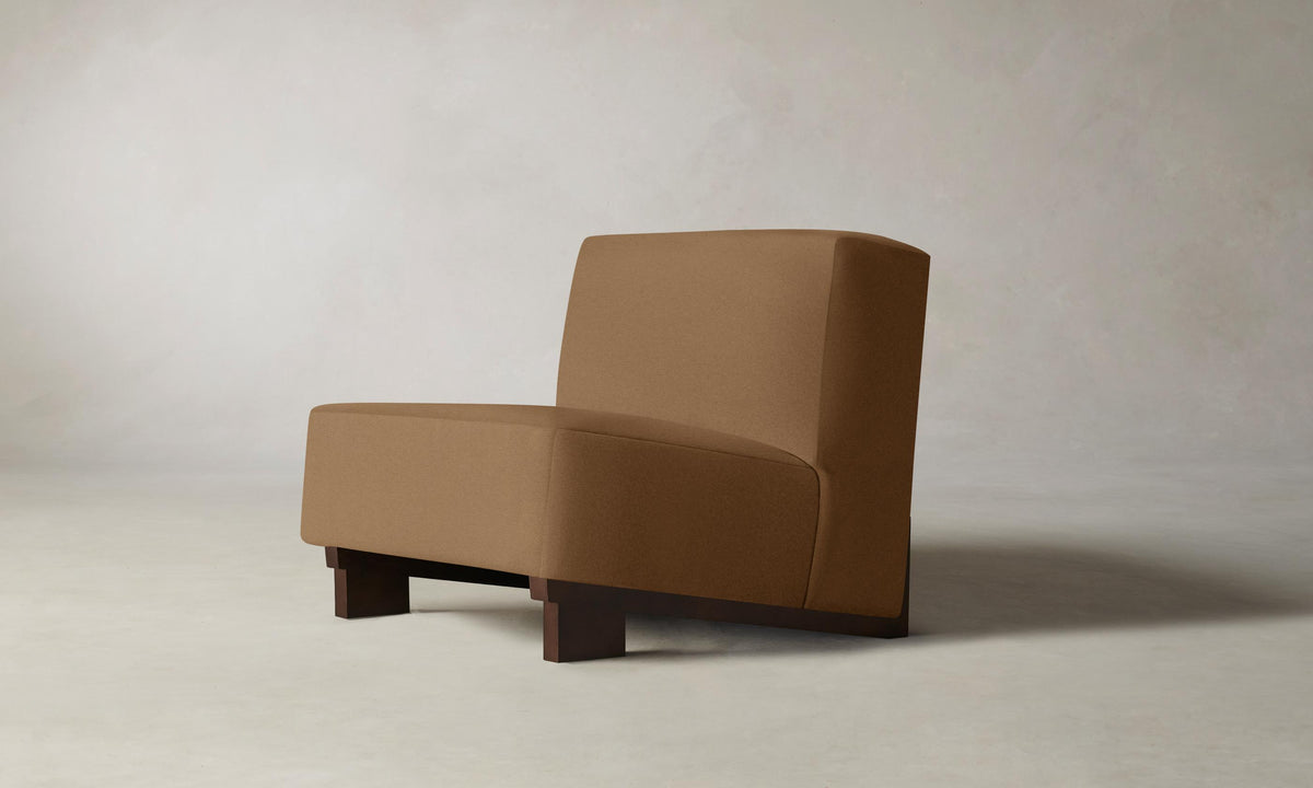The Remsen Chair’s bold proportions and streamlined silhouette are informed by Art Moderne design. It has a low-slung seat that sits at an angle atop a sculptural white oak base. Handcrafted in North Carolina.