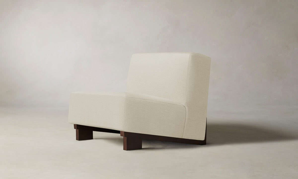 The Remsen Chair’s bold proportions and streamlined silhouette are informed by Art Moderne design. It has a low-slung seat that sits at an angle atop a sculptural white oak base. Handcrafted in North Carolina.
