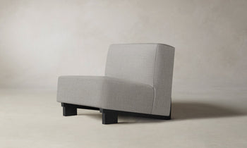 The Remsen Chair’s bold proportions and streamlined silhouette are informed by Art Moderne design. It has a low-slung seat that sits at an angle atop a sculptural white oak base. Handcrafted in North Carolina.