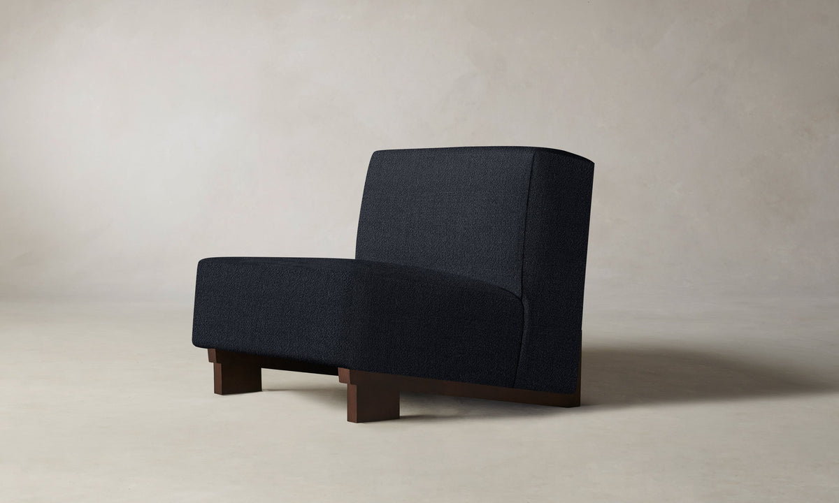 The Remsen Chair’s bold proportions and streamlined silhouette are informed by Art Moderne design. It has a low-slung seat that sits at an angle atop a sculptural white oak base. Handcrafted in North Carolina.